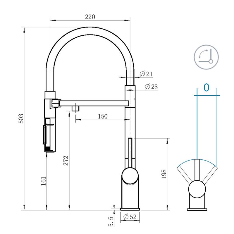 • Высота смесителя: