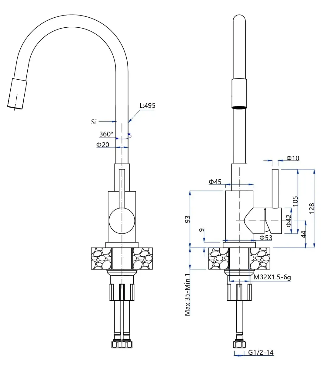 • Гибкий излив: