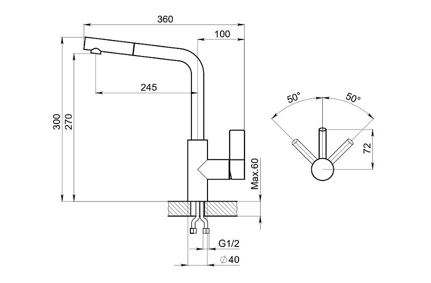 • Высота смесителя: