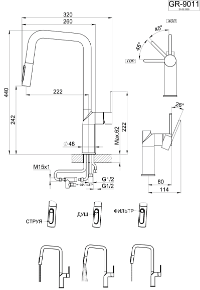 • Выдвижной излив: