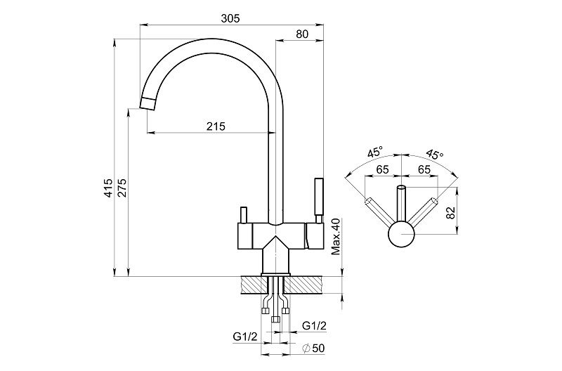 Высота смесителя:41.5