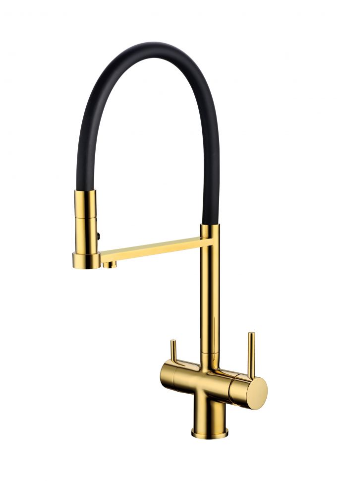 Смеситель для кухни Grocenberg GB4095 с гибким изливом Золото