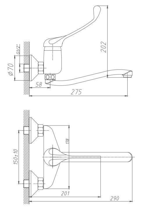 • Высота смесителя: