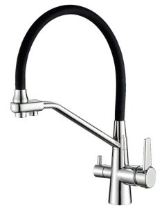 Смеситель для кухни Haiba HB76855 с подключением фильтра питьевой воды чёрный/хром