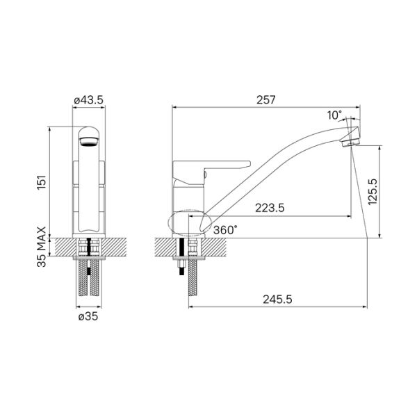 • Высота смесителя: