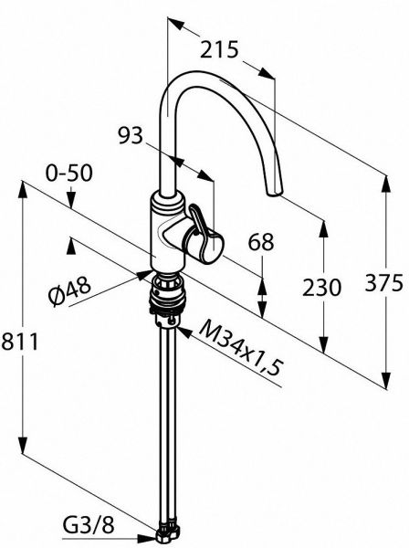 • Высота смесителя: