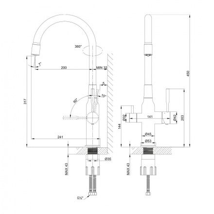 • Высота смесителя: