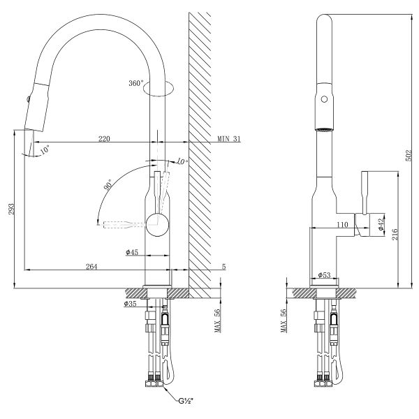 • Выдвижной излив: