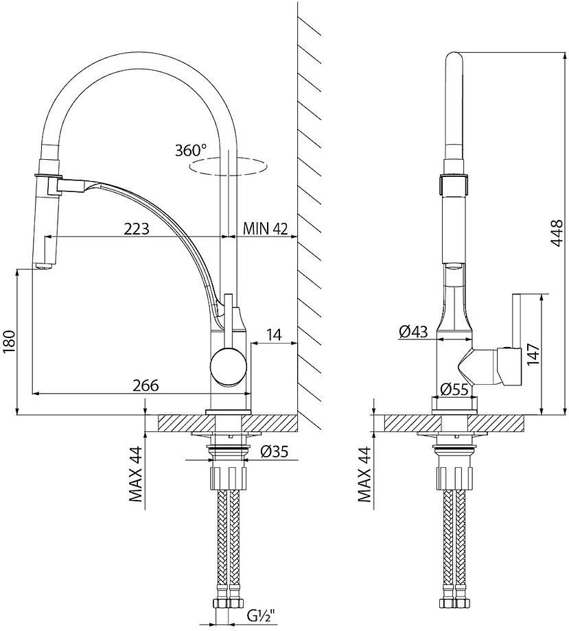 Высота смесителя:44.8