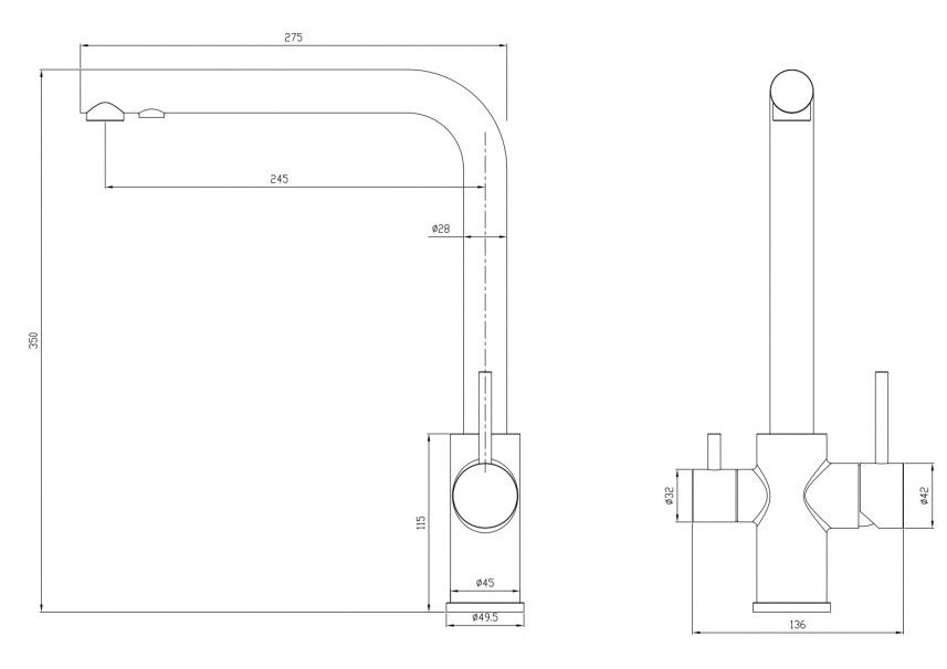 Смеситель для кухни Milacio Ultra MCU.553.SS под фильтр с краном для питьевой воды нержавеющая сталь купить