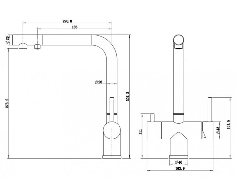 2. Возможность подключения фильтра обеспечивает легкий доступ к чистой питьевой воде и избавляет от необходимости установки дополнительного крана, сохраняя цельность и эстетику пространства. Для подачи фильтрованной воды предусмотрен отдельный рычаг регулировки.