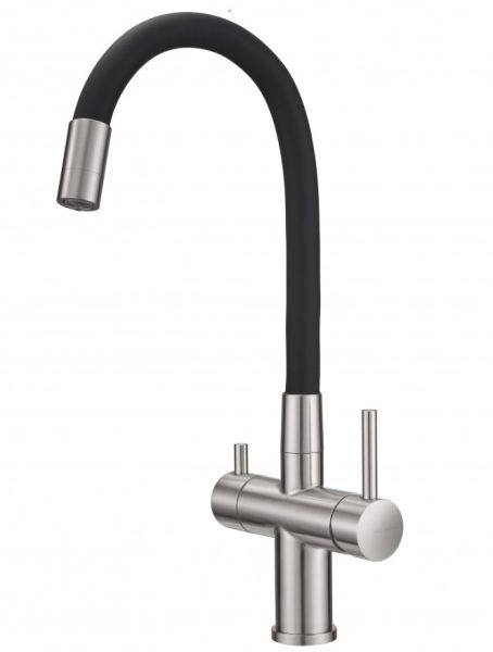 Смеситель для кухни Milacio Ultra MCU.560.SSB под фильтр с краном для питьевой воды и гибким изливом нержавеющая сталь/чёрный купить