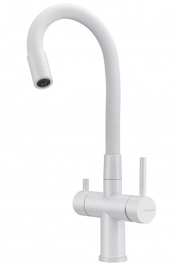 Смеситель для кухни Milacio Ultra MCU.560.WH под фильтр с краном для питьевой воды и гибким изливом белый