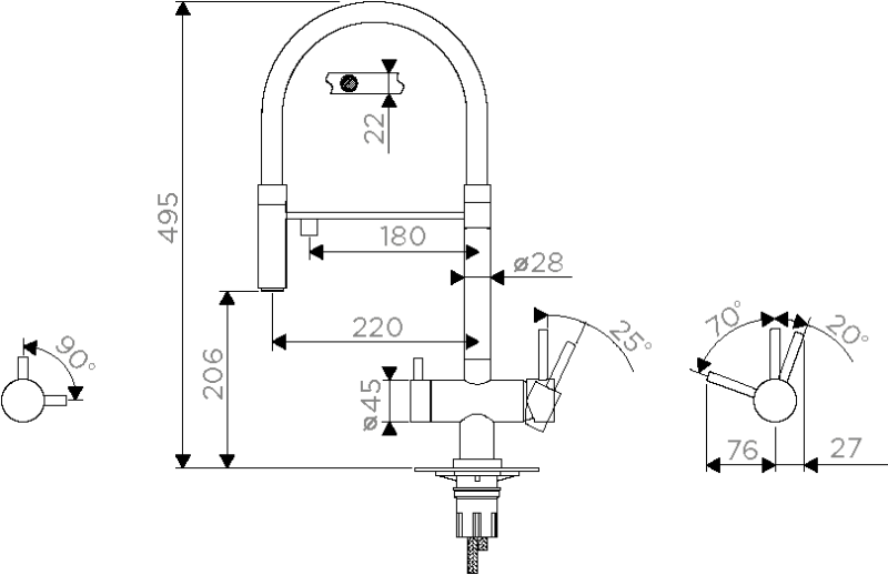 • Уникальная запатентованная конструкция - сочетание гибкого шланга и подачи фильтрованной воды; • Сменный гибкий шланг; • Современный дизайн и удобство использования, благодаря высокому изливу; • Технология PURE LIFE: Подключение фильтра для очистки воды. Фильтрованная вода подается по отдельной трубке и не смешивается с водопроводной водой; • Высококачественная латунь сохранит воду чистой и здоровой; • Аэратор произведен из пластика, благодаря чему на нем никогда не появится известкового налета и ржавчины; • Коробка внутри проложена поролоном, который обеспечит сохранность изделия при транспортировке; • Полный набор креплений, соединительных шлангов, подробная инструкция и гарантийный талон в комплекте.