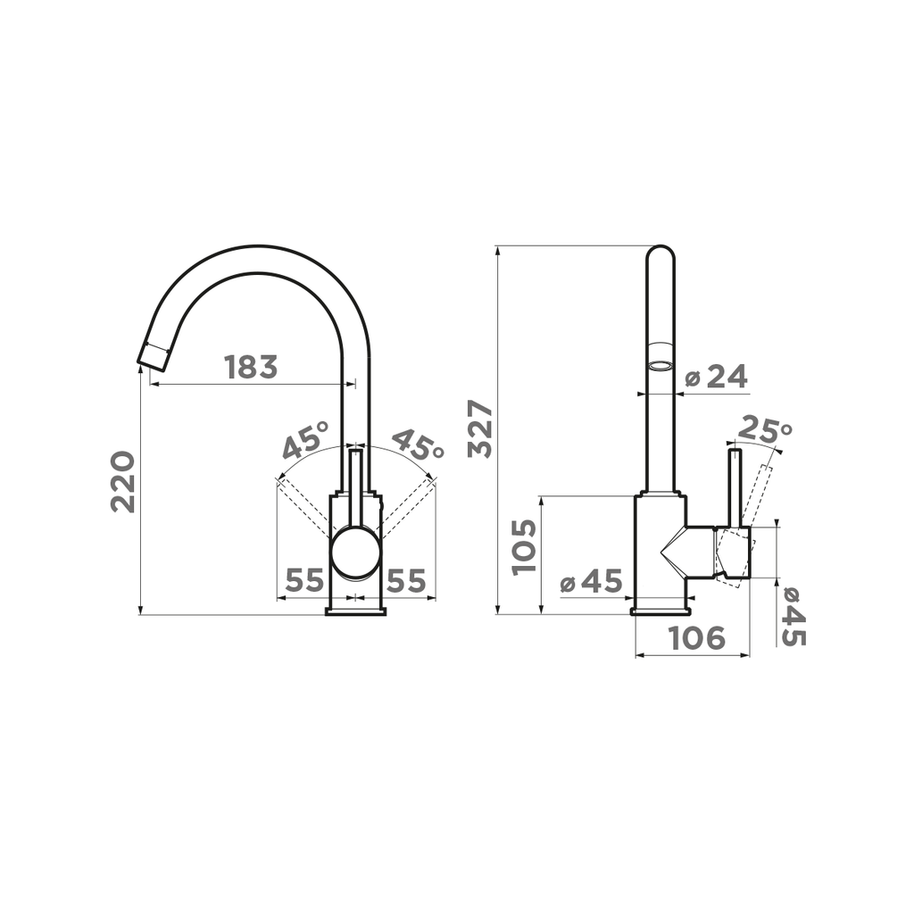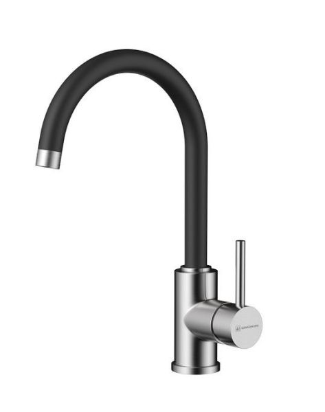 • Практичный однорычажный смеситель выполнен в современном стиле и снабжен высоким поворотным изливом.