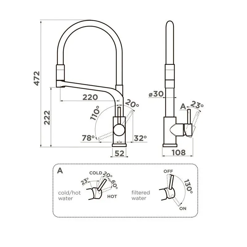 - Высота смесителя: 472 мм