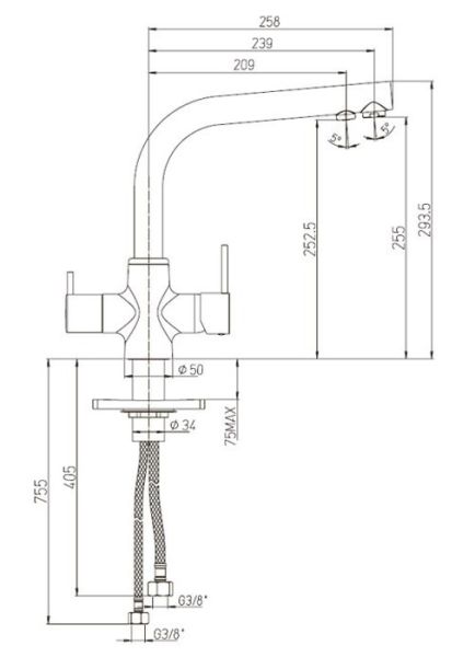 • Помимо стандартного рычага для управления температурой воды и открытия / закрытия, имеется рычаг для подачи фильтрованной воды.