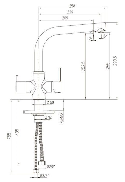 • Помимо стандартного рычага для управления температурой воды и открытия / закрытия, имеется рычаг для подачи фильтрованной воды.