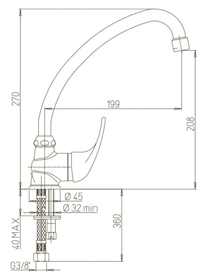 • Высокий излив удобен для манипуляция с посудой и продуктами в мойке.
