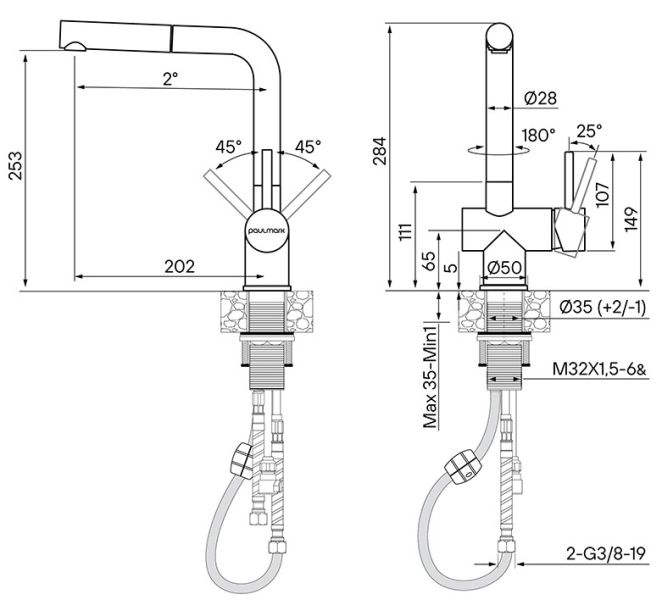 • Выдвижной излив: