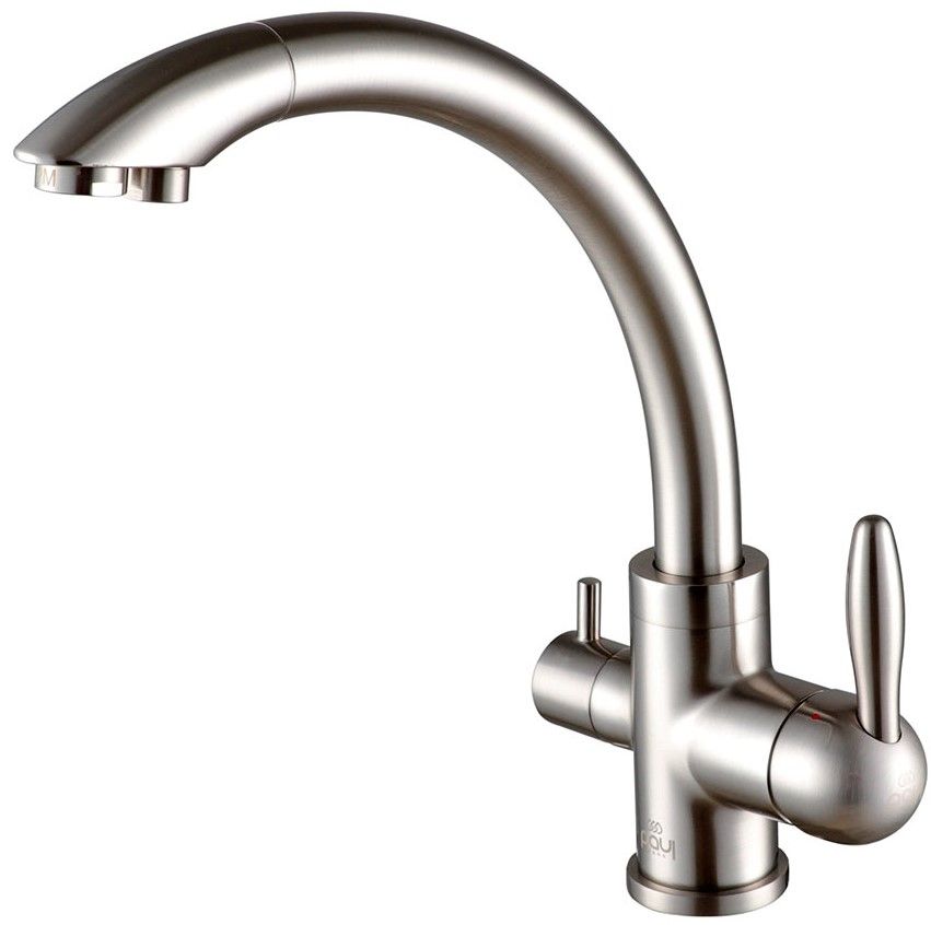 Смеситель для кухни однорычажный, с возможностью подключения фильтра питьевой воды, артикул Es213001-NIМатериал корпуса - латунь высокого качества. Многослойное, стойкое к истиранию покрытие. Долговечный керамический картридж диаметром 35 мм. Керамический переключатель на фильтр питьевой воды. Съемный пластиковый аэратор, который обеспечивает мягкую струю, ровный и экономичный поток воды. Простой монтаж, стандартное подключение.