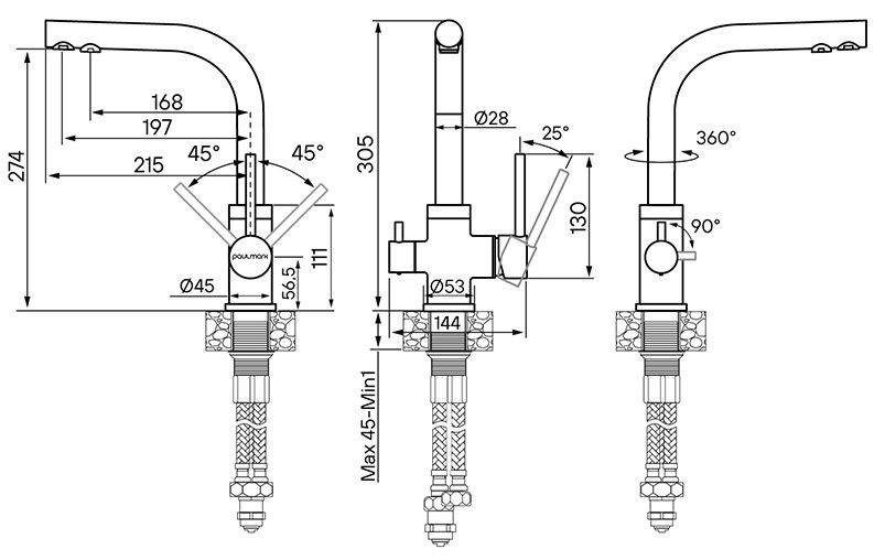 Конструктивная технология Trinkwasser предусматривает поступление фильтрованной воды, которая не смешивается с водопроводной. Фильтрованная вода подается через отдельные трубку и аэратор.