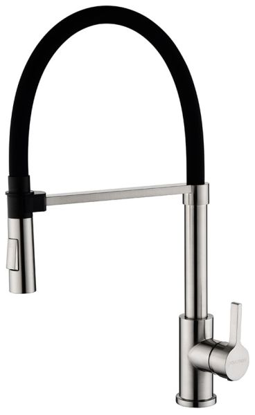 Смеситель для кухни, с гибким изливом, артикул Ha214021-NiИзготовлен из высококачественной латуни, которая отвечает высочайшим европейским стандартам качества, не содержит свинца, не разрушается со временем и безопасна для здоровья.