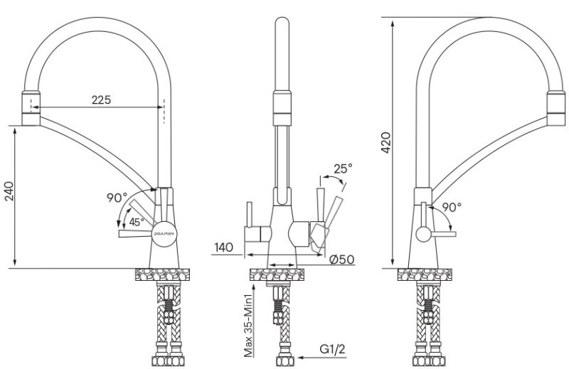 Высота смесителя:42