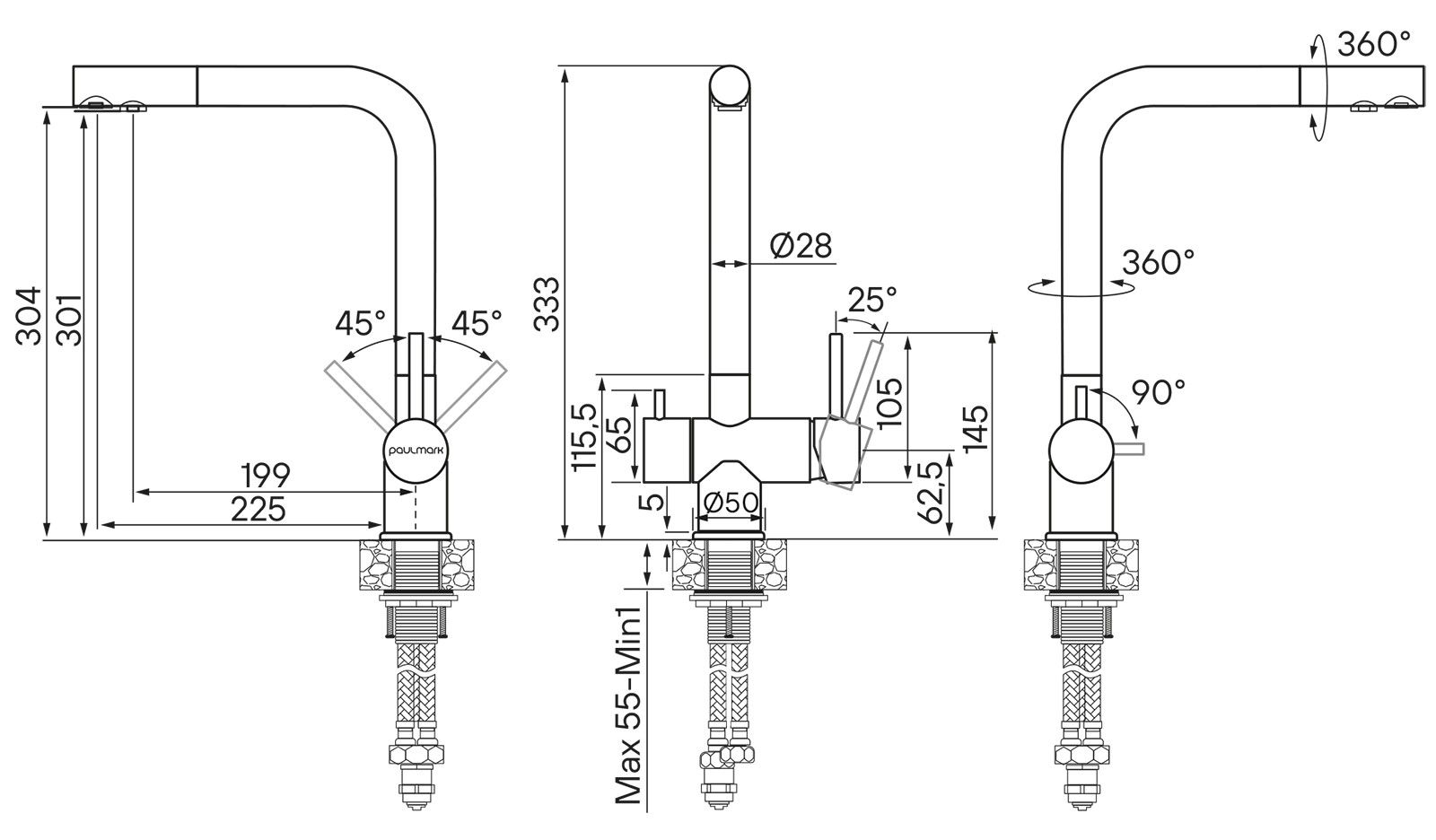 Смеситель для кухни Paulmark Skalen Sk213020-GM воронёная сталь