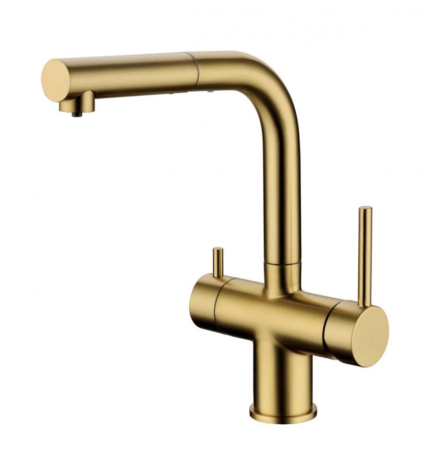 Смеситель для кухни под фильтр с выдвижным изливом GROCENBERG GB4097MG (Kerox Венгрия) Матовое золото