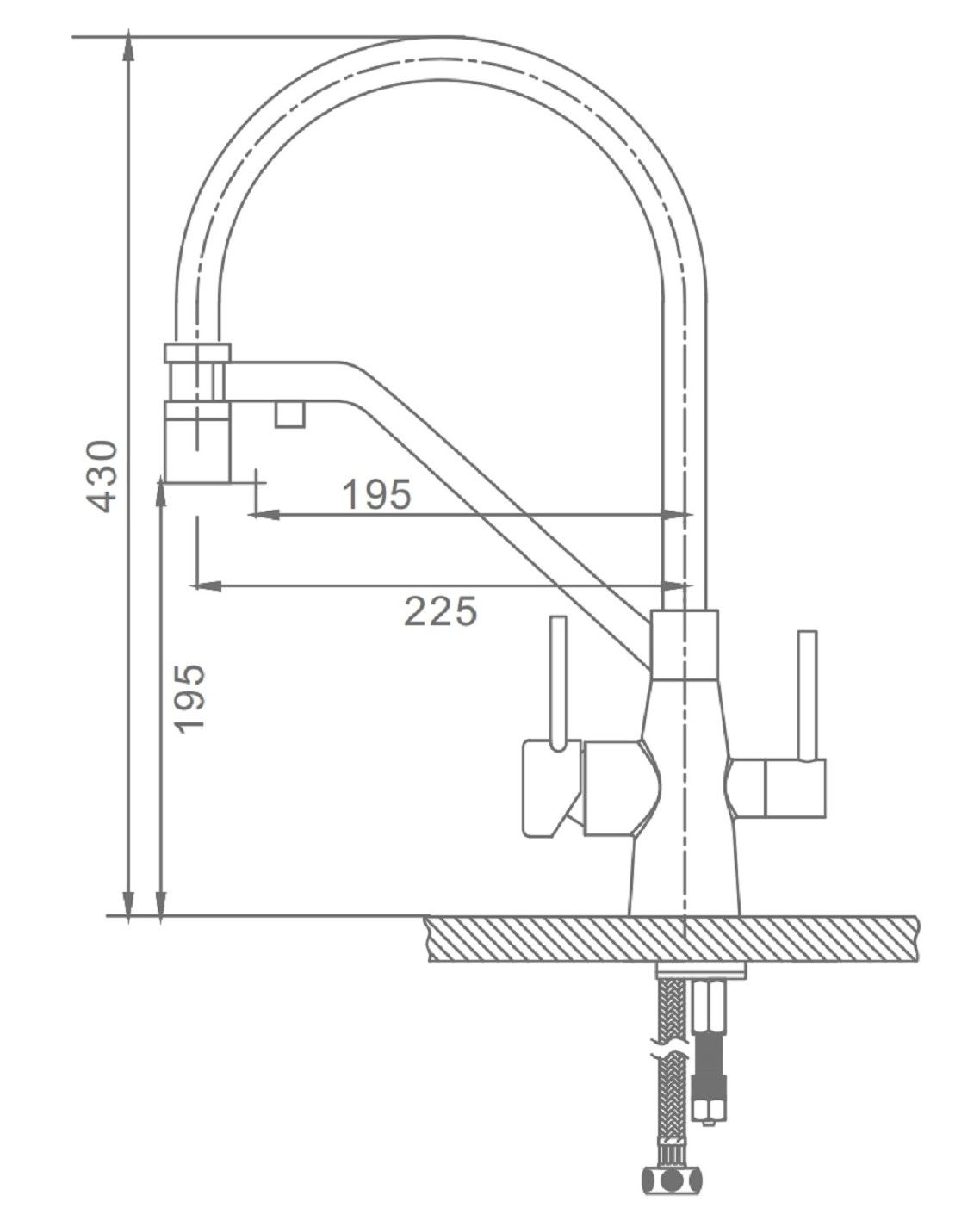 • Высота смесителя: