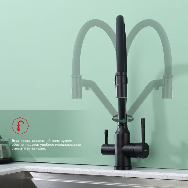 Смеситель для кухни Raglo R81.62.06 с подключением фильтра чёрный купить