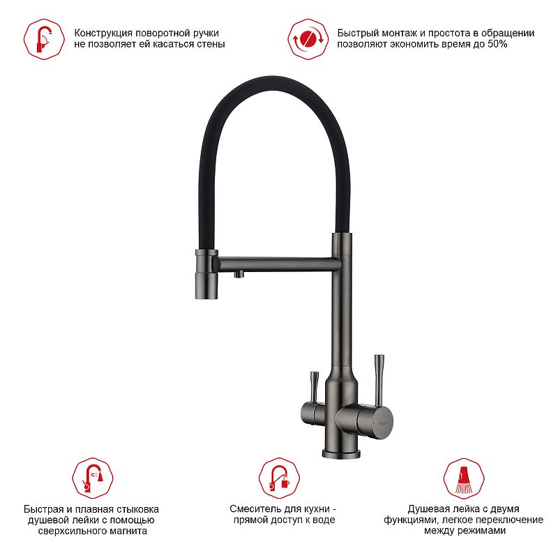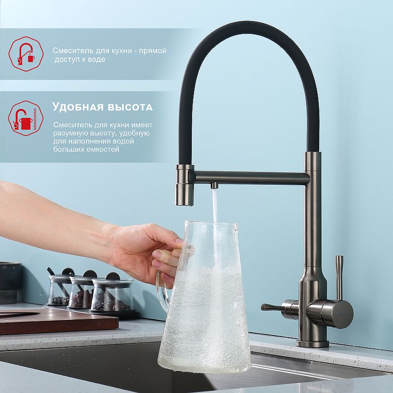Смеситель для кухни Raglo R81.63.09 с подключением фильтра графит купить