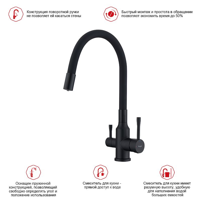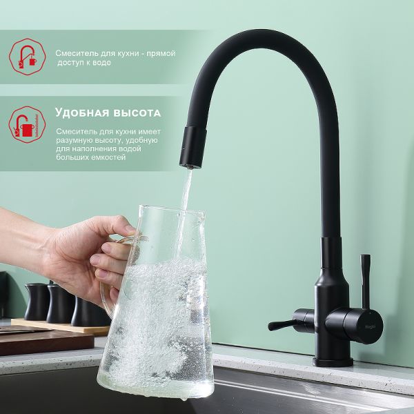Смеситель для кухни Raglo R81.64.06 с подключением фильтра чёрный купить