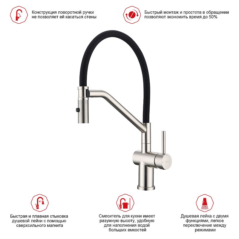 Смеситель для кухни Raglo R86.41.05 со съемным изливом на магните сатин
