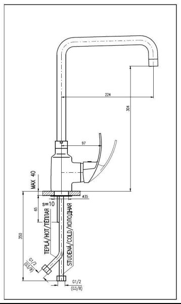 • Высота смесителя: