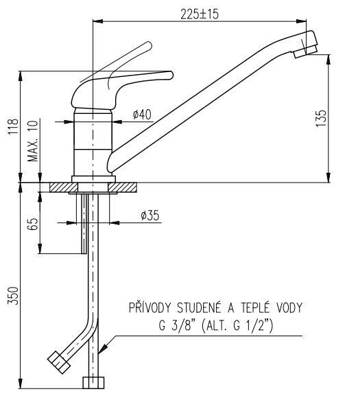 • Высота смесителя:
