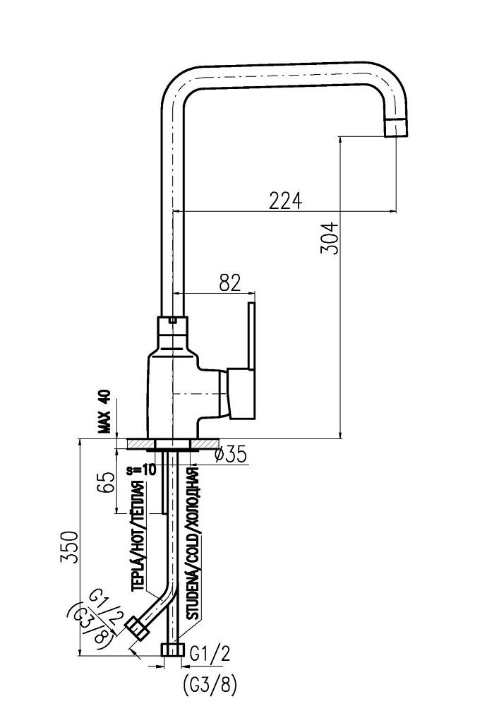 • Высота смесителя: