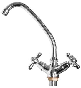 Двуручковый смеситель для кухни с высоким поворотным изливом, изогнутым в форме J.