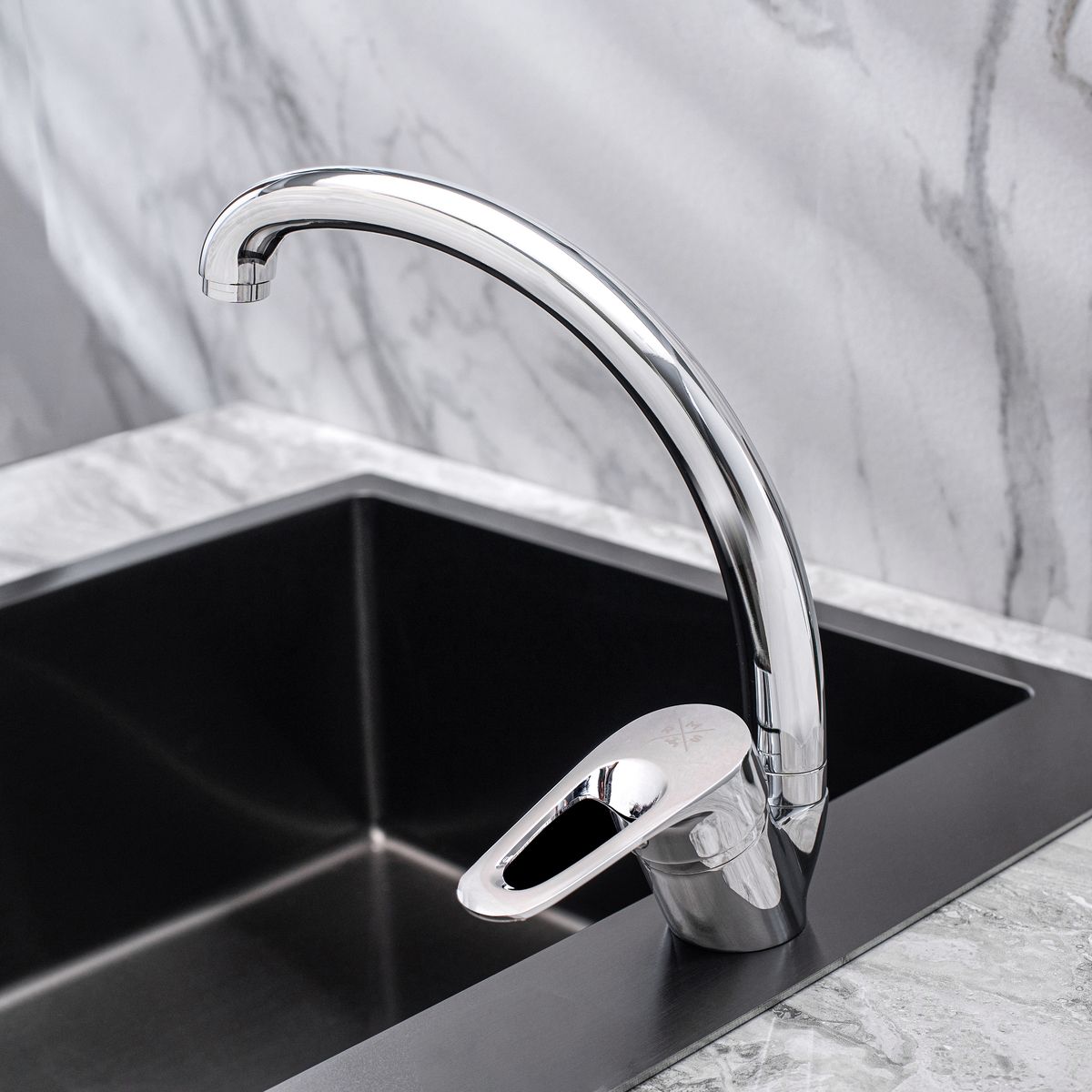 При производстве смесителей ТМ РМС используются только высококачественные материалы. Все модели проходят процесс гальванизации, что придает им большую износостойкость и улучшает антикоррозийные свойства. Установка смесителя крайне проста. Смесители РМС это сертифицированный продукт с 5-летней гарантией. Гибкая подводка идет в комплекте.Смеситель для кухни с высоким