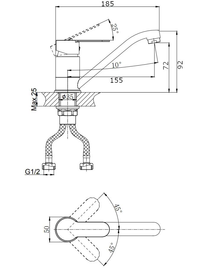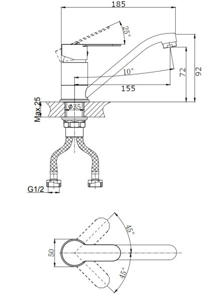 • Высота смесителя: