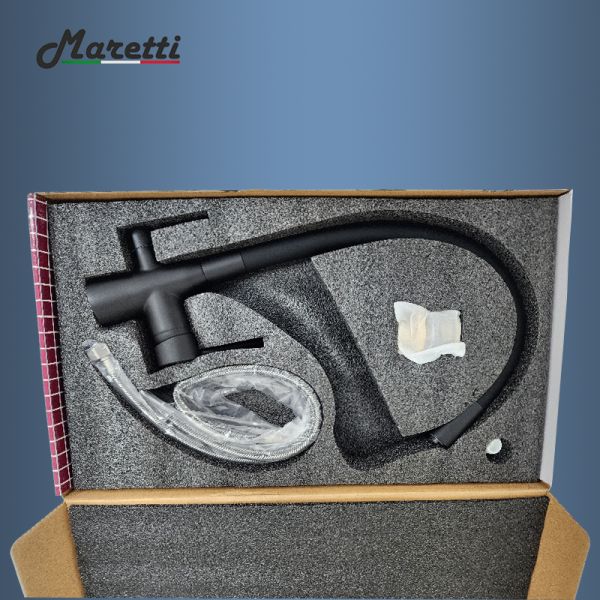 Смеситель для кухни с гибким изливом и подключением фильтра Maretti Project Black PB31RGF71, черный
