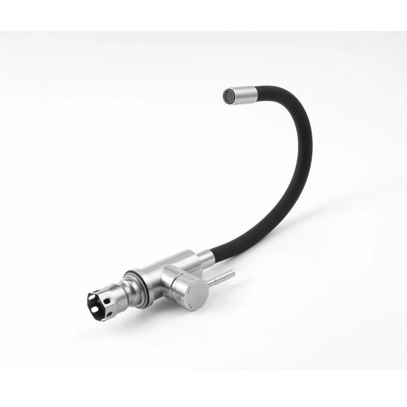 Гибкий излив и прочная конструкция из нержавеющей стали делают этот смеситель удобным и стильным выбором. Смеситель для кухни с гибким изливом Knotlor STREAMLINE SS-02 — это стильное и функциональное решение для вашей кухни. Хромовое покрытие придаёт изделию элегантный вид, а корпус из нержавеющей стали обеспечивает прочность и долговечность. Гибкий поворотный силиконовый излив обеспечивает максимальный комфорт при использовании, позволяя легко настроить струю воды под ваши нужды. Рычажное управление и керамический картридж гарантируют плавное и точное регулирование напора воды, а поворотный гибкий излив позволяет легко настроить направление струи. Внешняя поверхность излива выполнена из приятного на ощупь силикона чёрного цвета, что добавляет удобства в использовании. Стандарт подводки 1/2 дюйма и гибкая подводка в комплекте обеспечивают простоту установки и подключения смесителя. Стильный и функциональный дизайн гармонично впишется в интерьер любой кухни, создавая удобство и комфорт при использовании смесителя. Не откладывайте покупку кухонного смесителя Knotlor STREAMLINE SS-02 - сделайте свою кухню еще более удобной и современной уже сегодня!