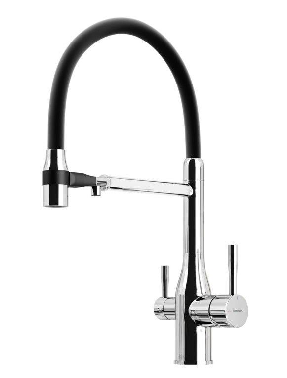 Смеситель для кухни SANCOS Garda с гибким изливом и возможностью подключения фильтра для воды, цвет хром, арт. SC4009CHФункция "Холодный старт" - при включении смесителя активируется холодной поток, для экономии горячей водыАэратор, гибкая подводка, ключ и крепления для монтажа