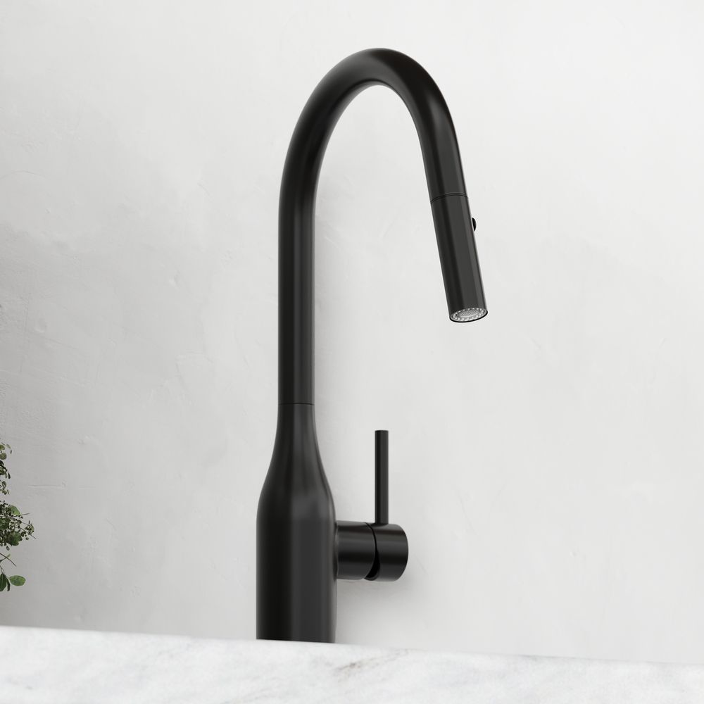 Смеситель для кухни SANCOS Grand c вытяжным и поворотным изливом, цвет матовый черный, арт. SC4002MBС возможностью регулировки температуры водыАэратор, гибкая подводка, ключ и крепления для монтажа, ключ для обслуживания аэратора