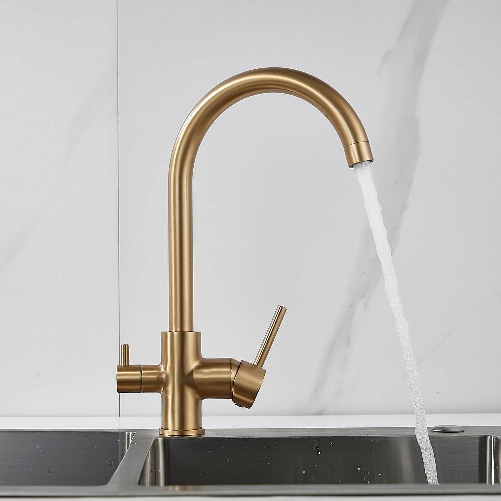 Смеситель для кухни Shevanik S128G с подключением фильтра золотой сатин купить