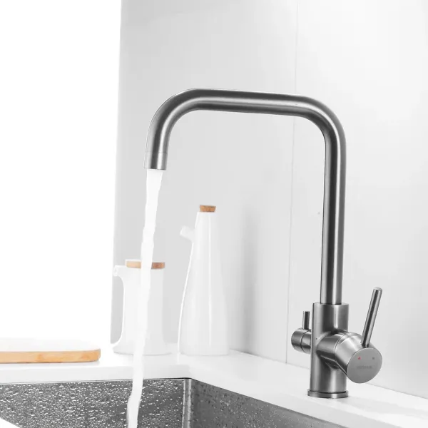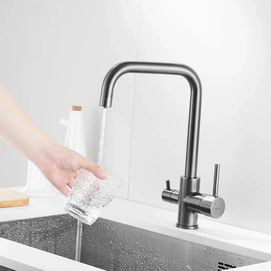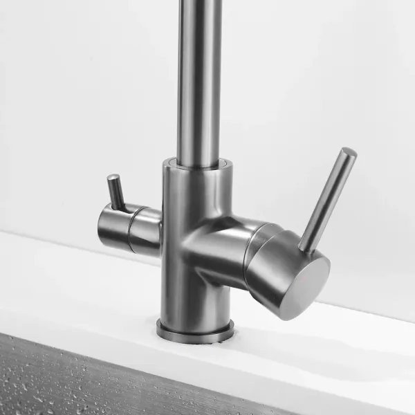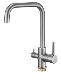 Смеситель для кухни Shevanik S228T с подключением фильтра оружейная сталь