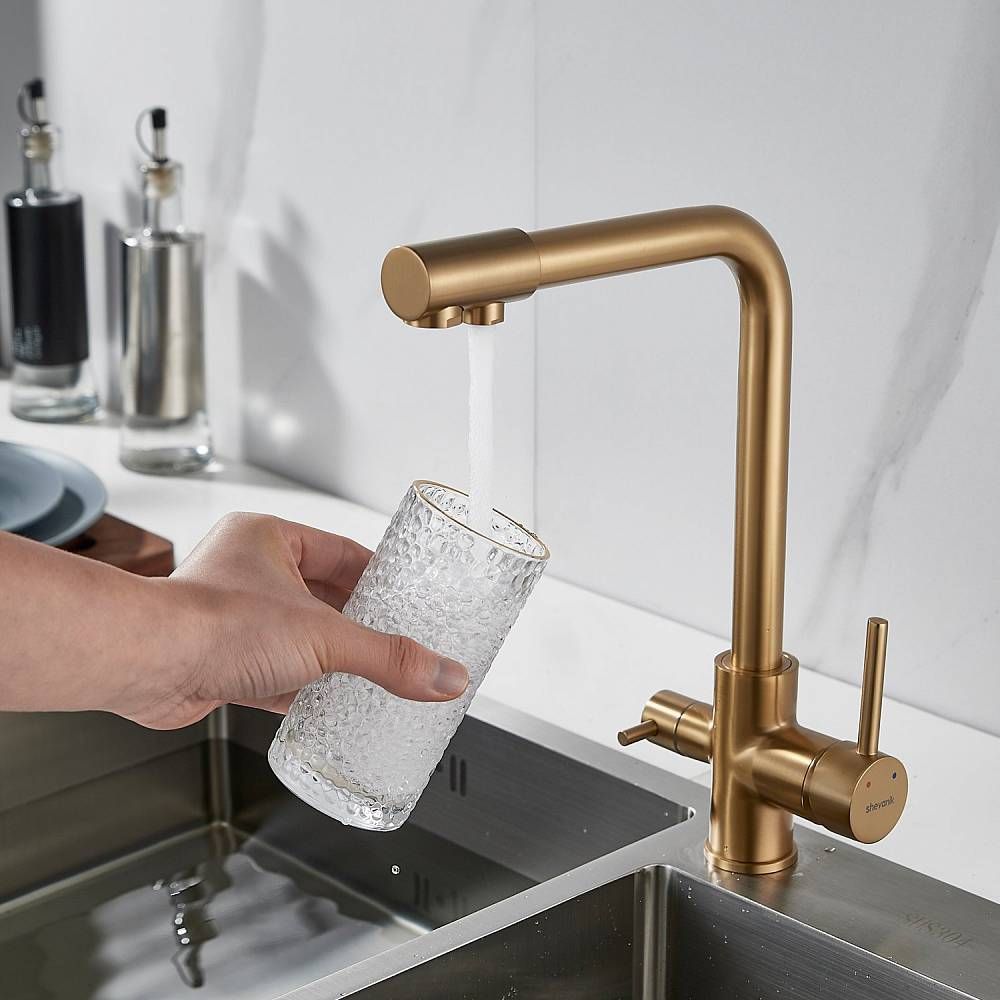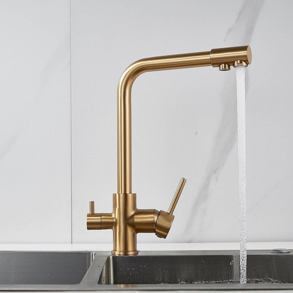 Смеситель для кухни Shevanik S328G с подключением фильтра золотой сатин купить