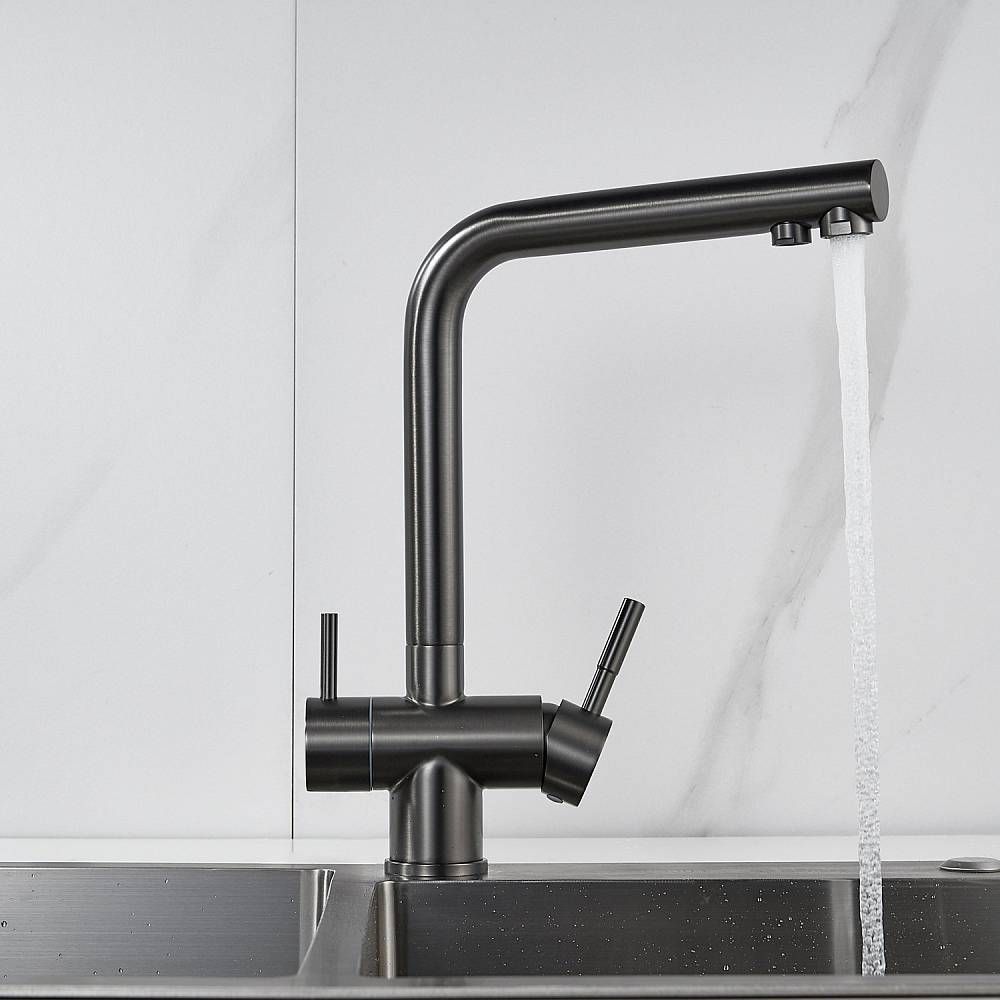 Смеситель для кухни Shevanik S468T с подключением фильтра оружейная сталь купить
