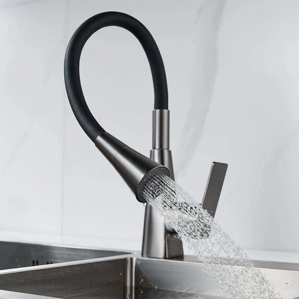 Смеситель для кухни с гибким изливом Shevanik S543T-3, оружейная сталь/черный.Управление: рычажное.Вращение излива: да.Выдвижной излив: нет.Гибкий излив: да.Высота:37,5.